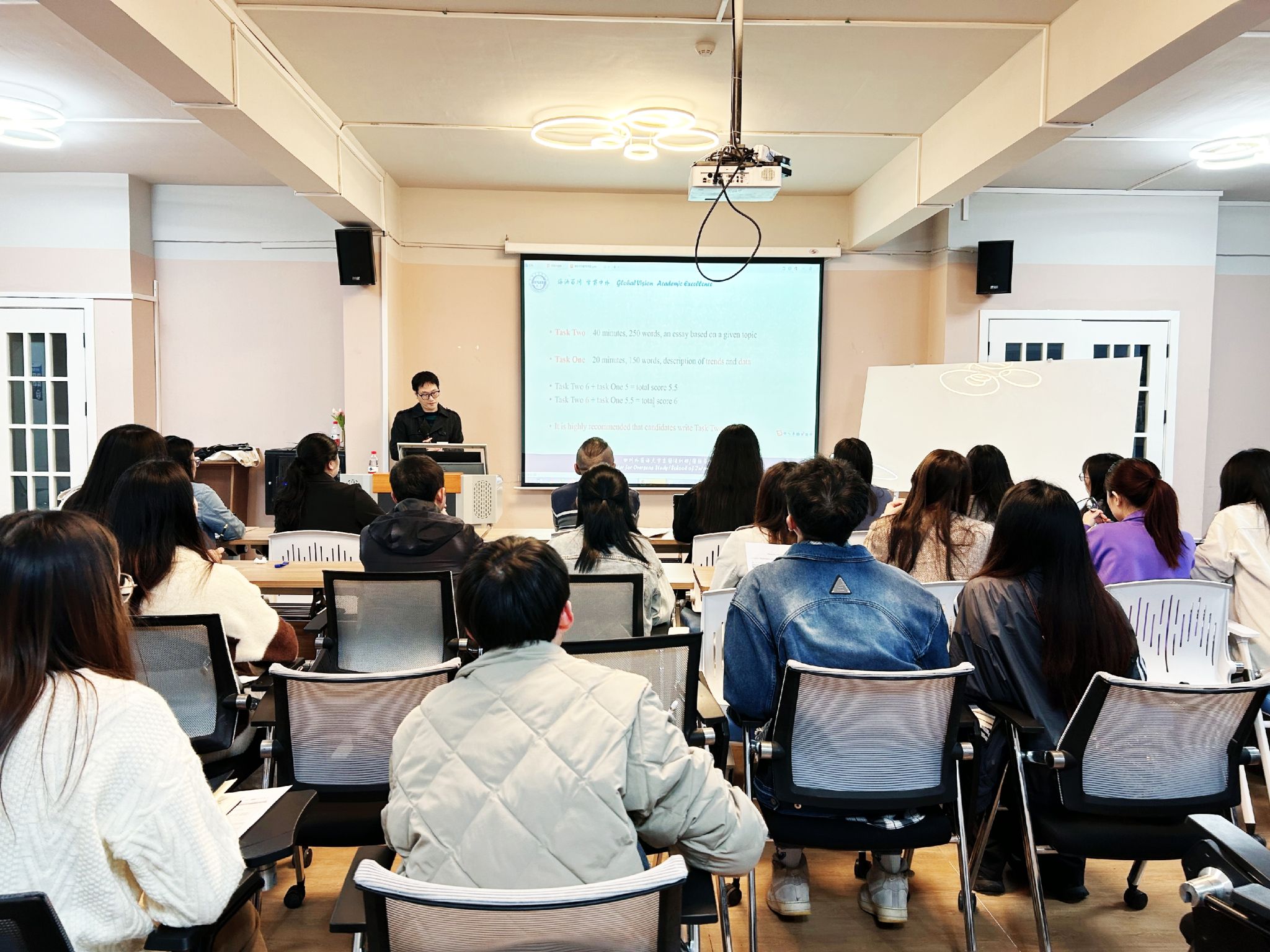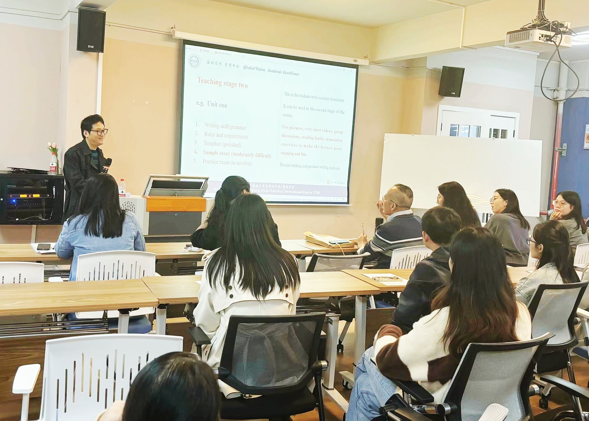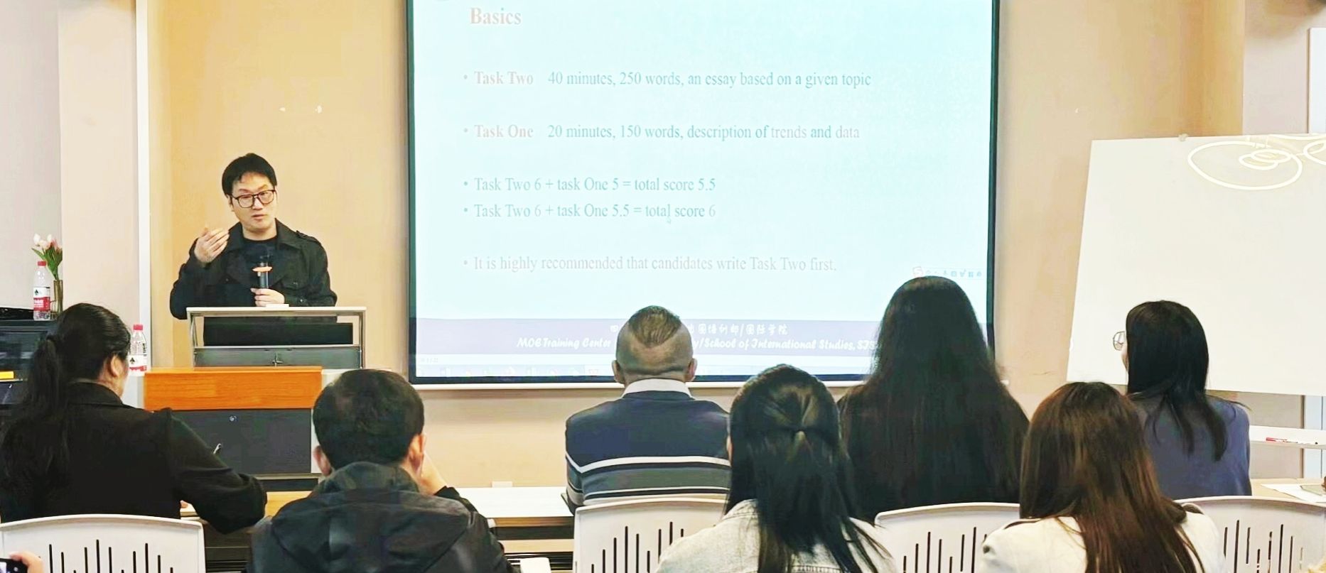 为进一步提升教师专业技能和教学效果,促进教育国际化和推动教育创新与改革,助推学生未来发展,2024年11月13日下午,由重庆移通学院国际教育学院主办的“雅思写作教学”专题讲座在綦河书院3号楼创客交流空间圆满举行。本次讲座特邀四川外国语大学国际学院教研室主任暨出国培训部写作专职任课教师唐国宇为主讲嘉宾,本校国际教育学院英语教研室主任朱陶主持会议,学院全体教师出席参与。