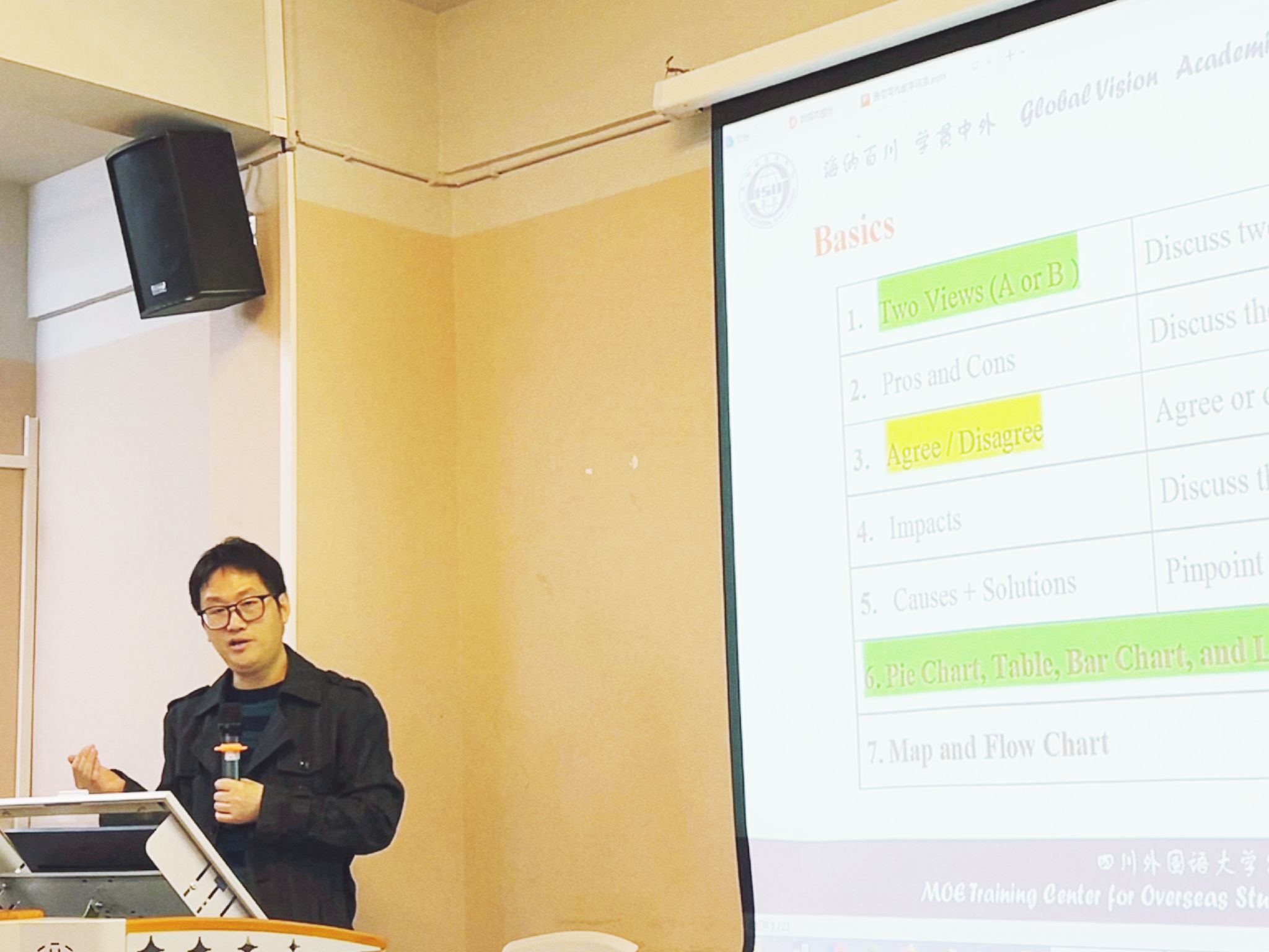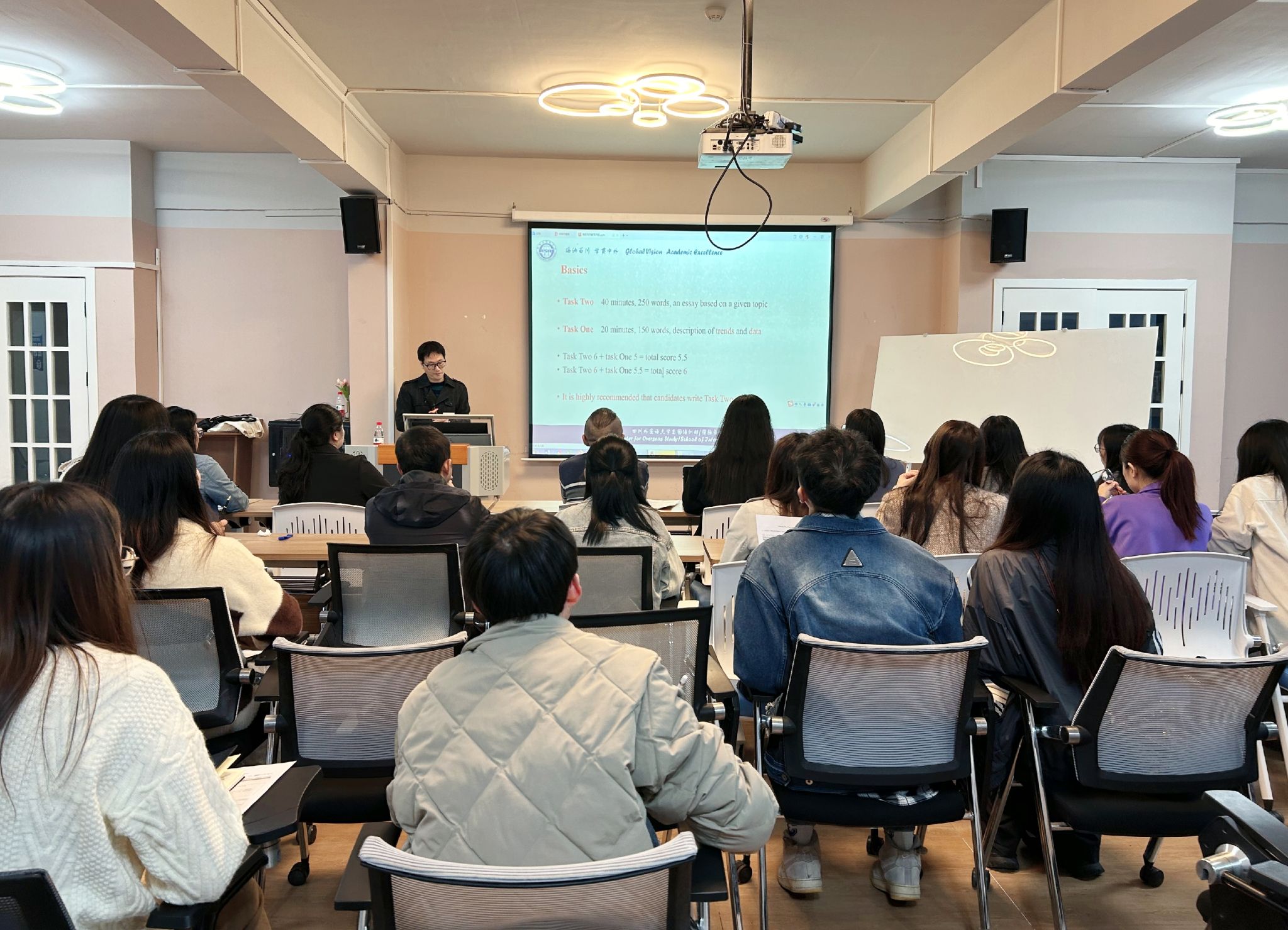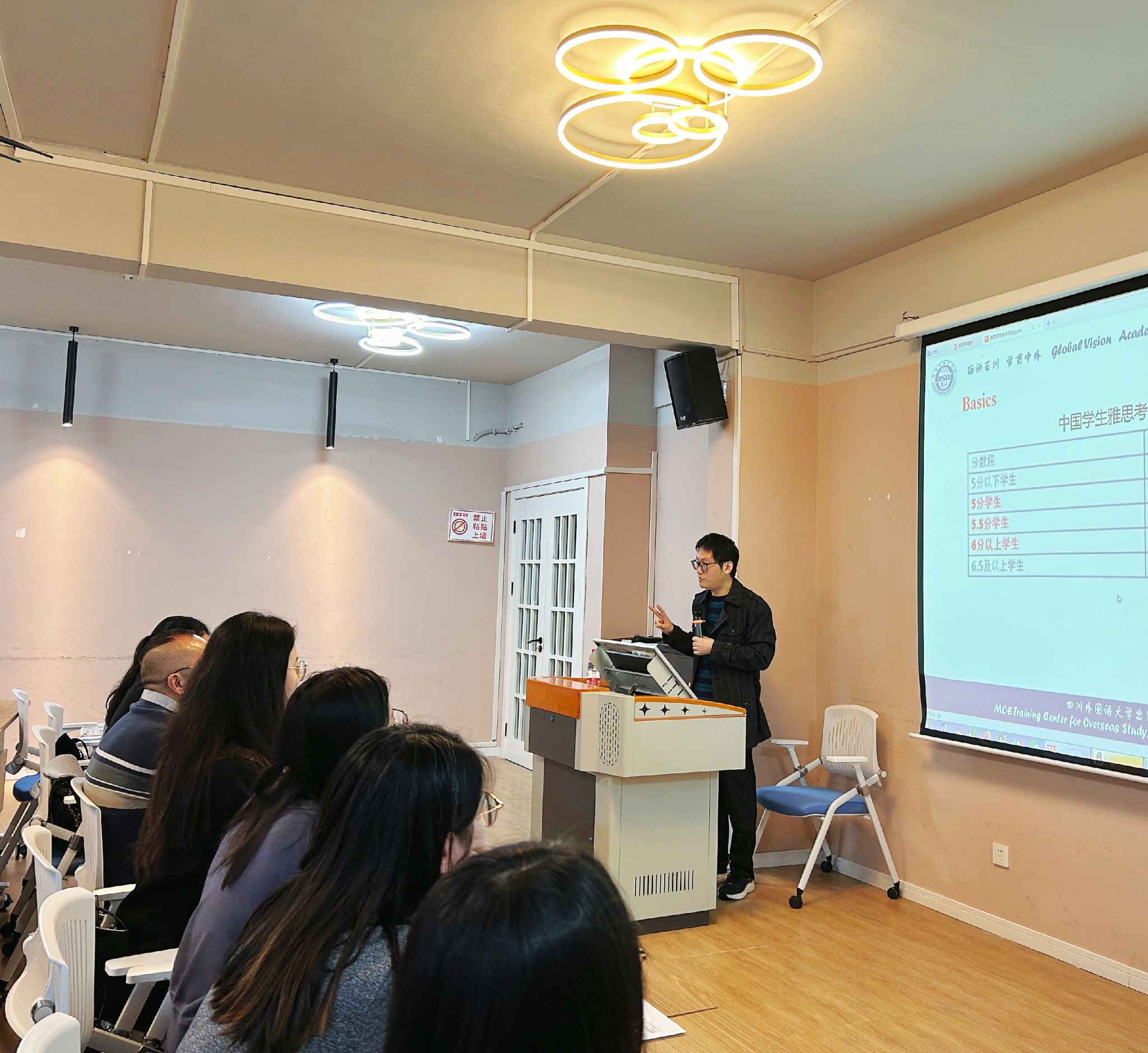 为进一步提升教师专业技能和教学效果,促进教育国际化和推动教育创新与改革,助推学生未来发展,2024年11月13日下午,由重庆移通学院国际教育学院主办的“雅思写作教学”专题讲座在綦河书院3号楼创客交流空间圆满举行。本次讲座特邀四川外国语大学国际学院教研室主任暨出国培训部写作专职任课教师唐国宇为主讲嘉宾,本校国际教育学院英语教研室主任朱陶主持会议,学院全体教师出席参与。