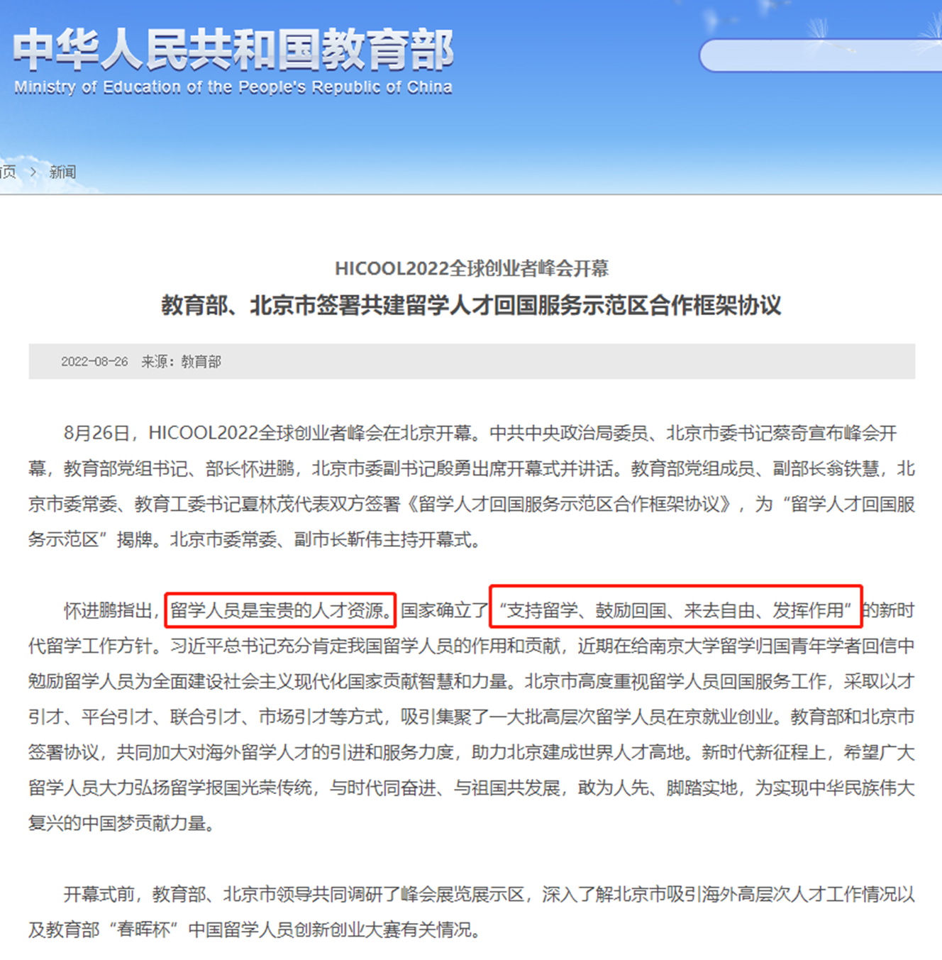 紧接着,国内也加大对海外留学人才的引进和服务力度,确立了“支持留学、鼓励回国、来去自由、发挥作用”的新时代留学工作方针,鼓励更多学生走出去。